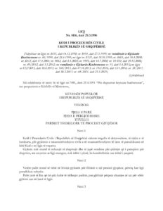 Ligji Nr.8116datë.29.03.1996 Kodi i Procedurës Civile i Republikës së Shqipërisë, të ndryshuar